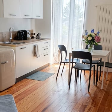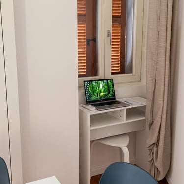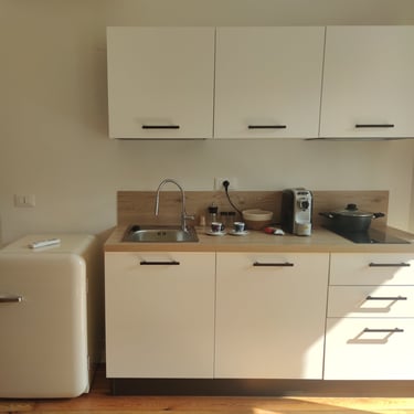 Questo monolocale è perfetto per chi vuole godersi lo spazio esterno e la magnifica vista sul lago, grazie all'ampio terrazzo attrezzato, che sembra essere proprio una stanza in più. Dispone di un letto matrimoniale e di un comodo pouf che si trasforma in un letto singolo aggiuntivo. Un comodo tavolo allungabile e l'angolo cottura completamente attrezzato rendono la zona pranzo molto confortevole. E proprio sotto la finestra con vista, una comoda scrivania come angolo lavoro.